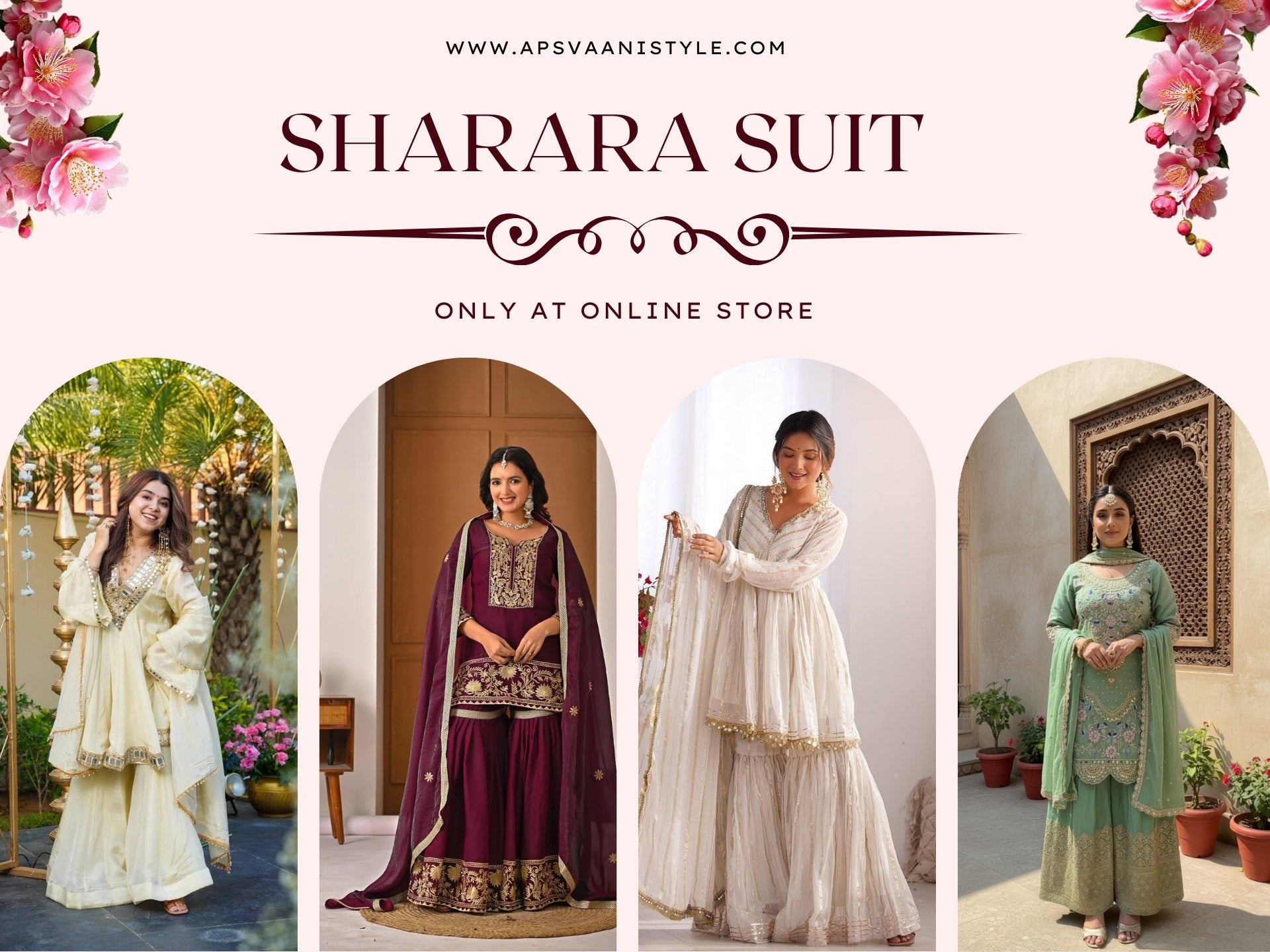 Eid Collection Designer Chinon Silk Sharara Plazzo Set for Women